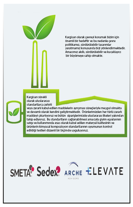 Endüstri girişimlerinin en başarılı uygulamalarının temel alındığı denetim protokolleri olan SEDEX SMETA, Arche Advisors ve Elevate sertifikalarına sahip olan Kargisan, Amazon’un onaylı üreticilerindendir.